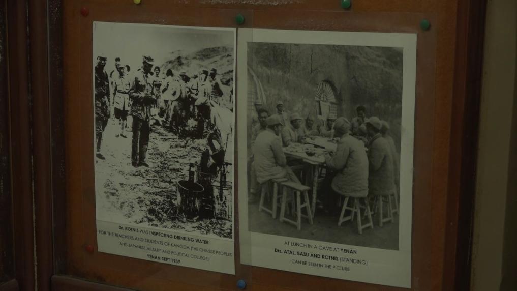 圖為印度柯棣華故居紀念館中展示的柯棣華在中國的照片。