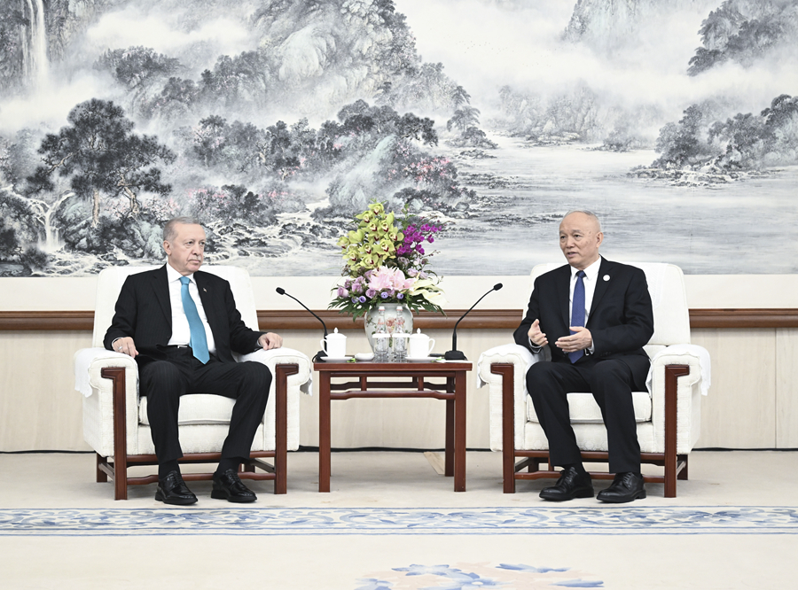9月1日,中共中央政治局常委、中央書記處書記蔡奇在天津會見來華出席2025年上海合作組織峰會的土耳其總統埃爾多安。新華社記者 燕雁 攝