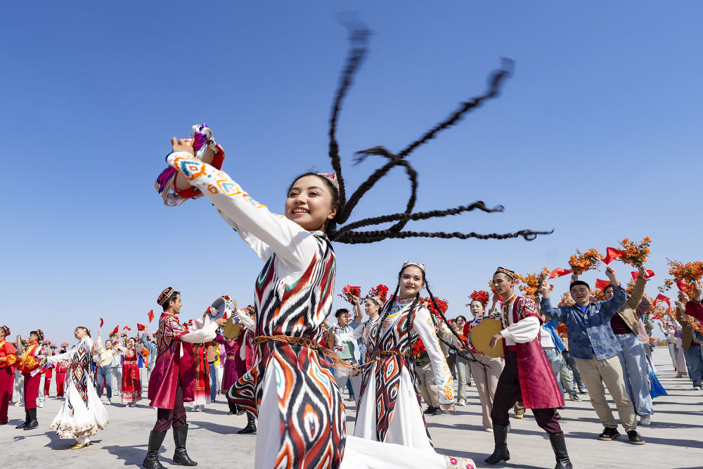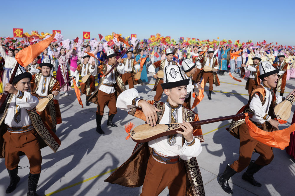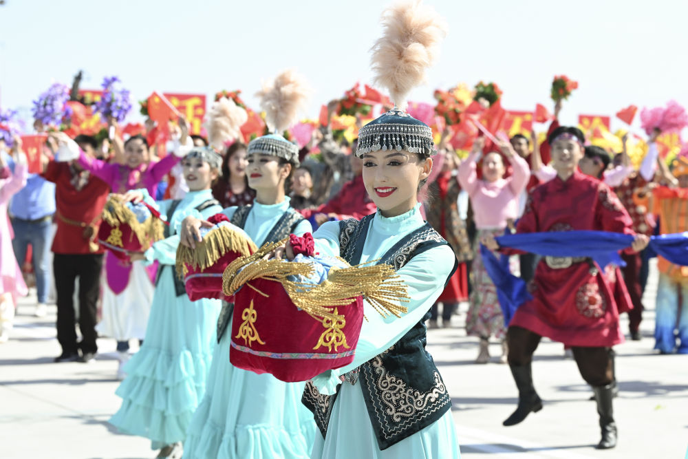 新華社記者的鏡頭里,各族兒女簇擁在一起,歡笑在一起;明艷的服飾、熱烈的歌舞,無不展現出團結與奮進的力量。