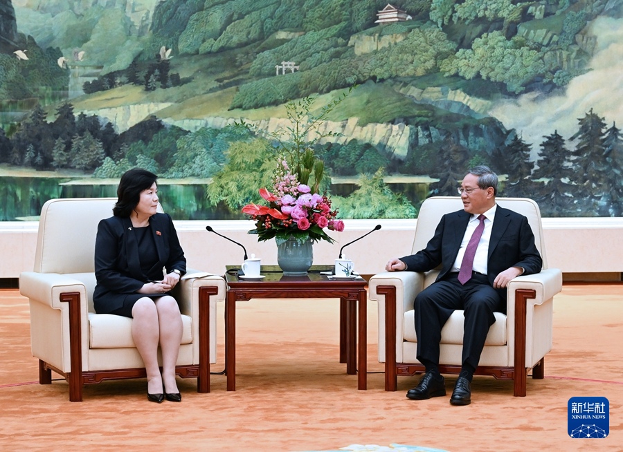 9月29日上午,國務院總理李強在北京人民大會堂會見朝鮮外相崔善姬。新華社記者 饒愛民 攝