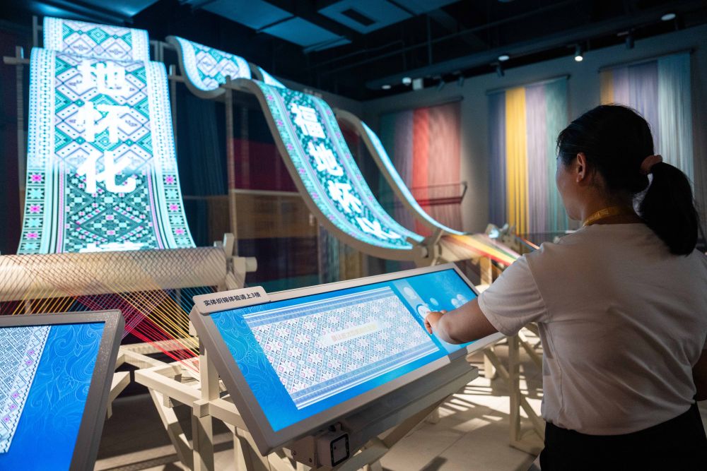 2025年9月16日,游客在湖南省懷化市五溪非遺園體驗數字化織錦。五溪非遺園于2025年5月正式開園,包含非遺廣場、數字體驗空間和研學工坊三大板塊,運用VR、AR、全息投影等技術打造42個沉浸式非遺體驗項目。目前,懷化以五溪非遺園為抓手,推出非遺主題研學項目、開發深度互動項目,構筑特色文化產業體系,吸引更多人了解、學習非遺,讓傳統技藝成為城市發展的文化動力。