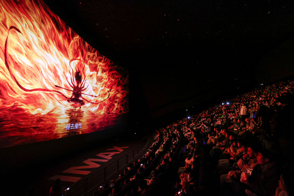 2025年2月25日,觀眾在貴陽越界影城IMAX影廳內觀看電影《哪吒之魔童鬧?!?。動畫電影《哪吒之魔童鬧?!纷?月29日上映后票房一路高歌猛進,僅用8天便登頂中國影史票房榜,隨后成為全球單一市場票房冠軍、全球動畫電影票房冠軍。2025年以來,國家電影局等相繼啟動“跟著電影品美食”“跟著電影去旅游”“中國電影消費年”活動,充分發揮電影對提振消費的積極作用;各地文旅部門等通過發布觀影消費券、舉辦主題活動等形式推動影旅融合,發展票根經濟。