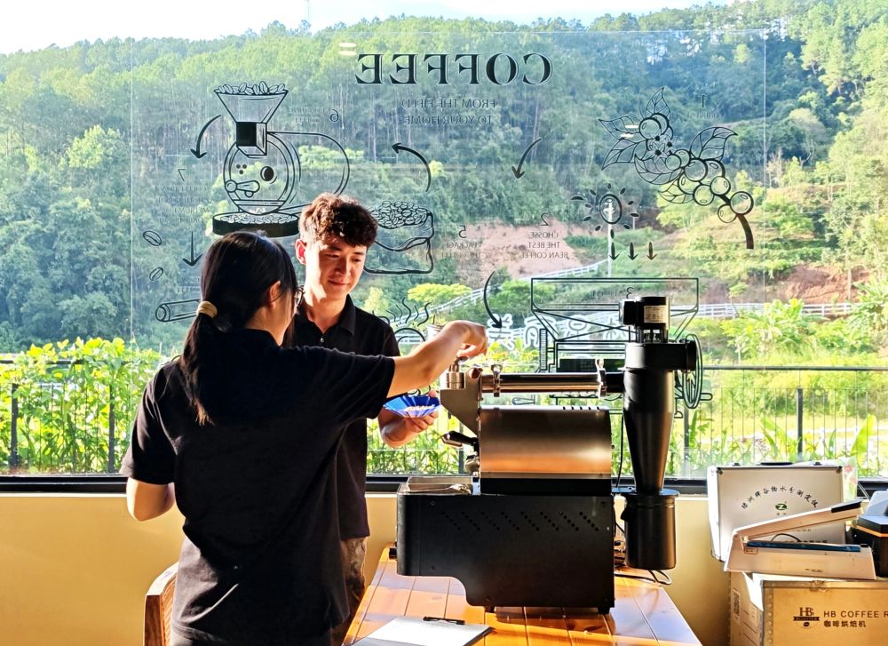 2025年9月20日,云南省普洱市南屏鎮南島河村“美麗星村·有風咖谷”咖啡體驗中心的工作人員在烘焙咖啡豆。因普洱茶享譽海內外的普洱市依托豐富的咖啡資源和獨特的咖啡文化,積極推進咖啡與旅游的深度融合,打造了咖啡莊園、咖啡主題街區和咖啡文化集市等多元體驗場景,受到游客青睞。近年來,云南憑借得天獨厚的咖啡種植優勢和文旅資源,通過科技賦能、精品化轉型、業態創新、集群發展和文化注入,逐步實現“咖啡+文旅”產業鏈各環節價值提升。