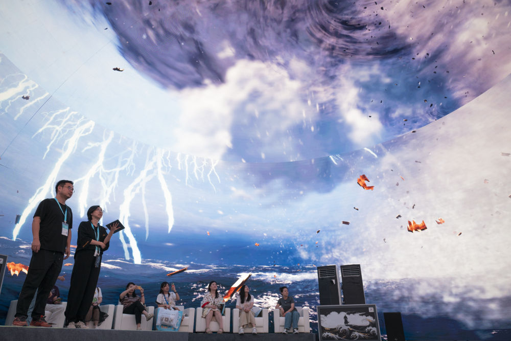 2025年9月12日,觀眾在2025中國文化旅游產業博覽會上參觀多業態文旅球幕。當日,2025中國文化旅游產業博覽會在武漢開幕,本次博覽會以“深化文旅融合 暢享美好生活”為主題,融合“展、演、銷、游”四大功能。室外展區展示以“河山添錦繡”為主題的文旅IP花車矩陣,室內展館集中展現文旅新業態、新場景、新產品,涵蓋數字集群、智能導覽、低空文旅、非遺文創等方面,吸引了國內2000余家展商以及50家海外旅行商參展。