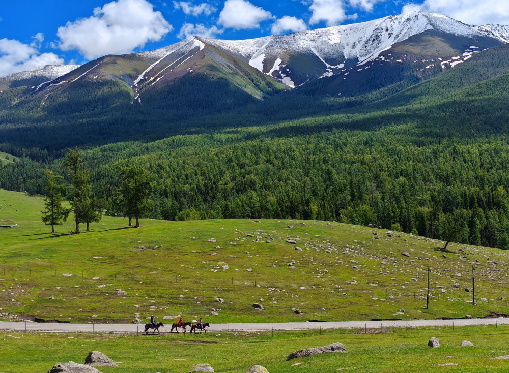 2024年6月4日,游客在新疆阿勒泰地區哈巴河縣騎馬游玩。電視劇《我的阿勒泰》播出后,新疆阿勒泰地區迎來客流高峰,“張鳳俠的小賣部”“巴太樹”“彩虹布拉克”等劇中地點成為熱門旅游打卡地。這場“邊城”與“熱劇”雙向奔赴的文旅盛宴,為當地經濟發展帶來新的增長點。2024年5月,當地接待游客415.03萬人次,同比增長60.81%;實現旅游收入36.53億元,同比增長88.25%。