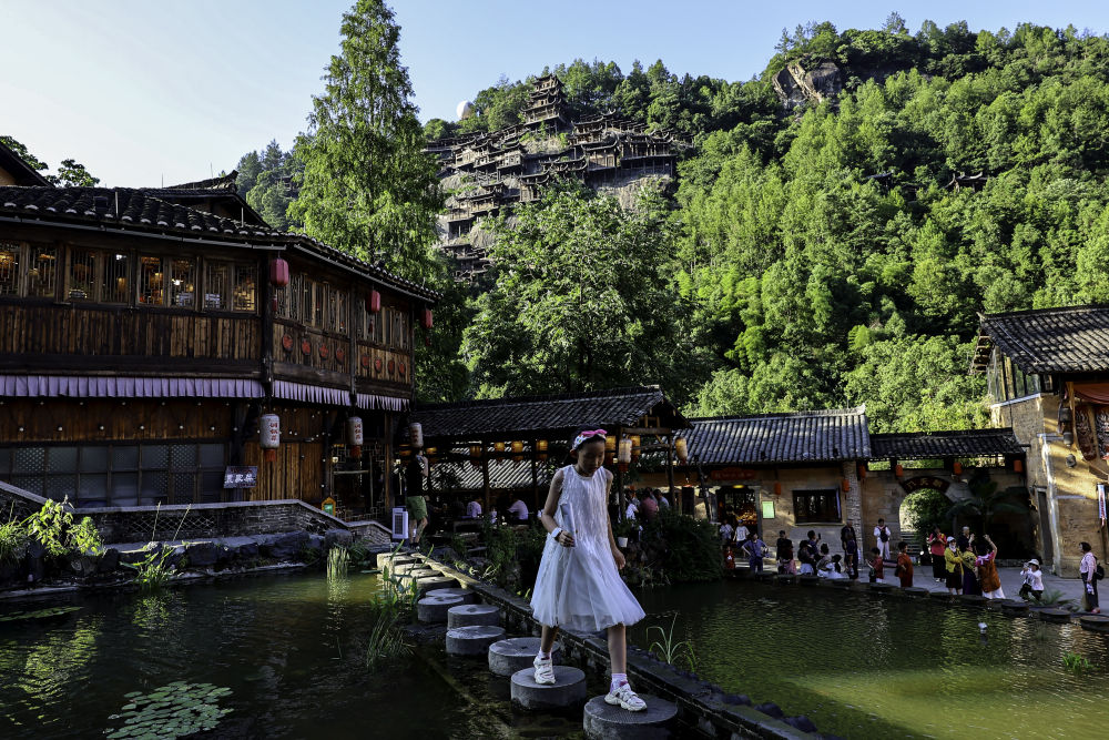 2025年7月11日,游客在位于江西省上饒市望仙鄉的望仙谷景區游覽。近年來,望仙谷景區因其獨特的“仙俠世界”景觀火爆出圈,吸引大批游客來此觀光。景區2024年接待游客310萬人次,全年實現旅游收入5.28億元,同時顯著帶動周邊鄉鎮的食、住、行、娛等行業發展。望仙谷景區的建設運營促進了村民返鄉和能人進鄉,提供直接就業崗位超過2000個,帶動周邊就業3萬余人。