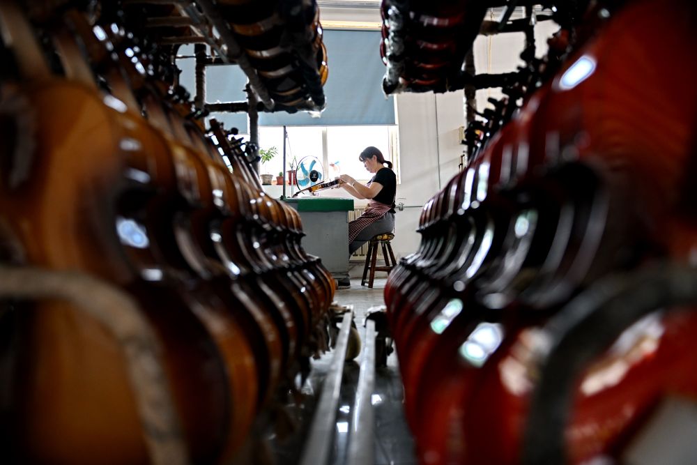 2025年5月28日,河北省武強縣一家樂器生產企業的工人在制作尤克里里。武強縣樂器產業歷經30余年的發展,形成擁有超過150家企業、從業人員萬余人的產業集群,產品覆蓋100多個品種、400多種規格。近年來,武強縣依托樂器文化產業資源,打造集樂器加工、樂器體驗、音樂展演和休閑度假等業態為一體的周窩音樂小鎮,同時創新“樂器+”鄉村振興模式,持續增強樂器產業的富民強縣作用。2024年武強縣樂器產業實現營收23.8億元,旅游收入超10億元。