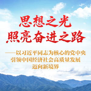 思想之光照亮奮進之路。以習近平同志為核心的黨中央帶領億萬人民不懼風雨、破浪前行,以無比的勇毅攻堅克難,以堅定的信心開創未來,在理論創新和實踐創新相互激蕩、彼此輝映的進程中推動中國不斷邁向發展新境界。
