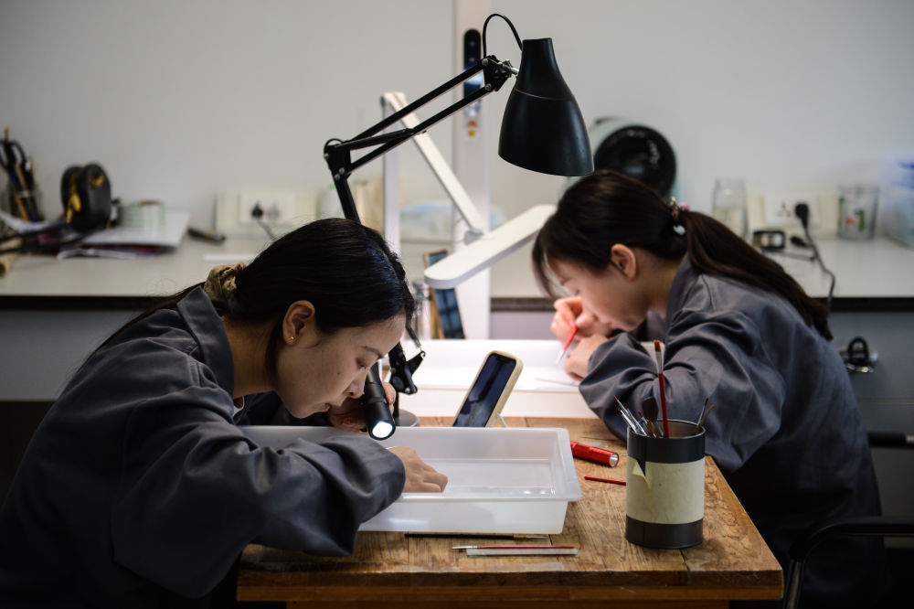 2024年3月16日,孩子們在長沙簡牘博物館參與社會教育活動“探秘簡牘的清洗與保護”。