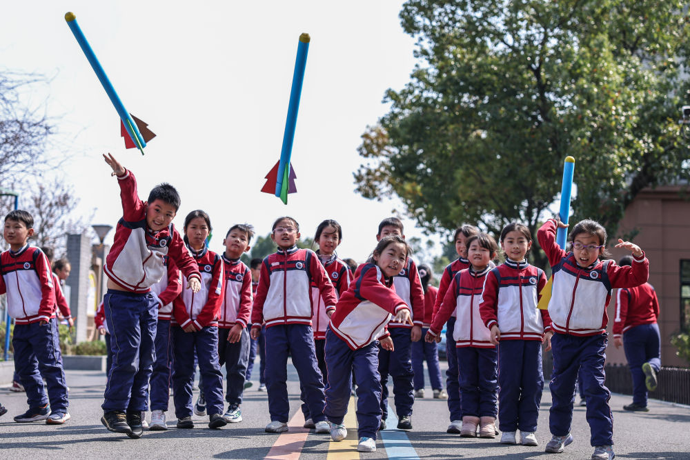 2025年3月19日,浙江省寧波市江北區修人學校的學生在課間活動時玩游戲。從2025年春季學期開始,寧波市江北區將課間活動時間由10分鐘延長至15分鐘,鼓勵各校依據辦學特色、場所特點和學生特征“一校一策”制定課間活動方案,充分引導孩子們走出教室、走向戶外,享受快樂校園生活、健康茁壯成長。