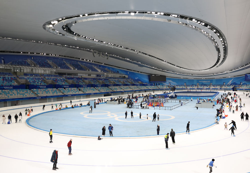 2025年1月4日,游客在北京國家速滑館體驗滑冰。2024至2025雪季,國家體育場“鳥巢”歡樂冰雪季、國家速滑館“冰絲帶”冰雪狂歡季等活動相繼開展,吸引眾多游客。