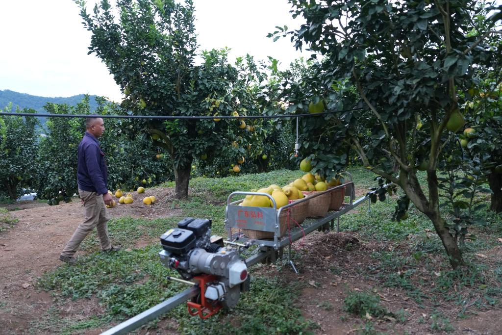 “穿梭于樹間的軌道和滿載柚果的山地運輸車吸引了總書記的目光,我向總書記介紹運輸車作用可大了。以前山林高高低低、山路坑坑洼洼,我們只能肩挑背扛?,F在這些設備既能拉柚子,又能運化肥。人上不去的地方,還能用無人機?!秉S開志笑著說。