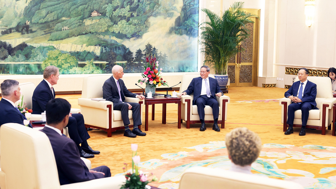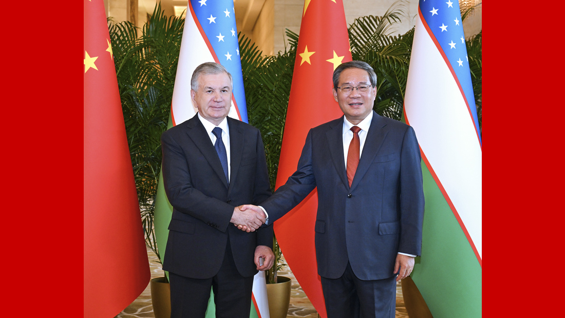 李強會見烏茲別克斯坦總統米爾濟約耶夫