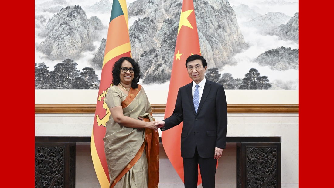 王滬寧會見斯里蘭卡總理阿馬拉蘇里亞