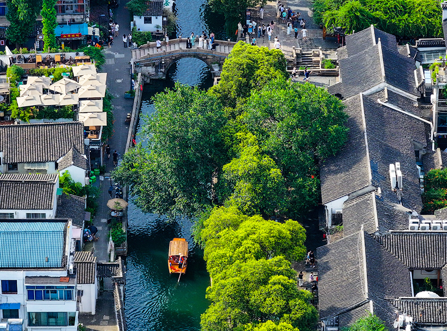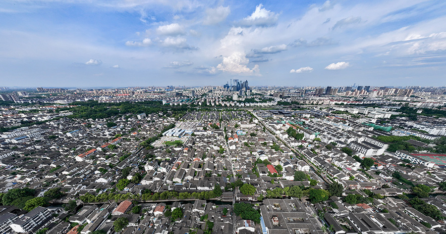 2023年7月3日拍攝的蘇州平江歷史文化街區(無人機照片)。新華社記者 李博 攝