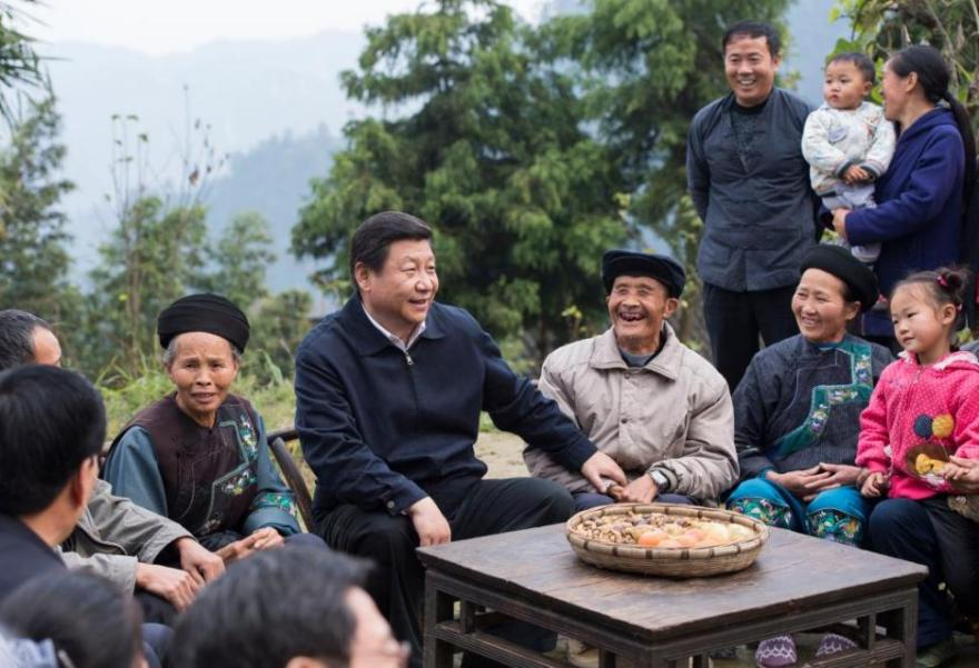 2013年11月3日下午,習近平在湖南湘西土家族苗族自治州花垣縣排碧鄉十八洞村同村干部和村民座談。新華社記者 王曄 攝