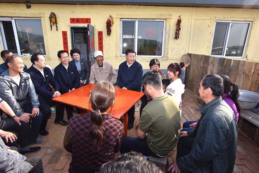 2016年4月24日下午,習近平在六安市金寨縣花石鄉大灣村向村民們了解脫貧工作情況。新華社記者 李學仁 攝