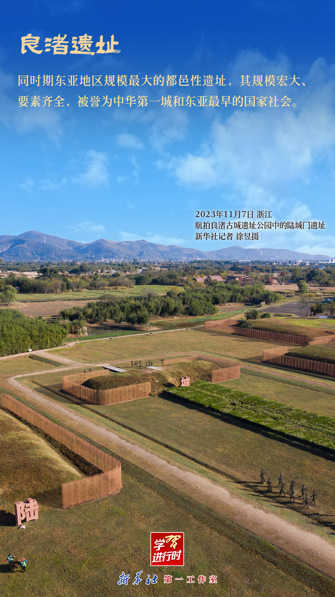 良渚遺址是中華五千年文明史的實證,是世界文明的瑰寶。在悠遠的歷史長河中,中華文明以獨樹一幟的創新創造、一脈相承的堅持堅守,樹立起一座座文明高峰。