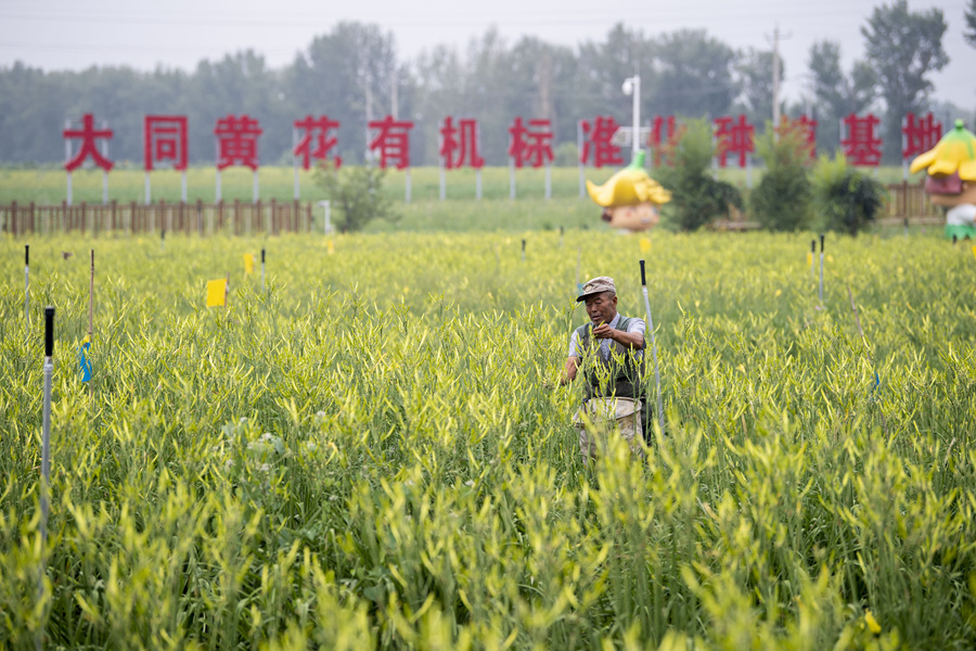 那次考察期間,習近平總書記來到大同市云州區有機黃花標準化種植基地。