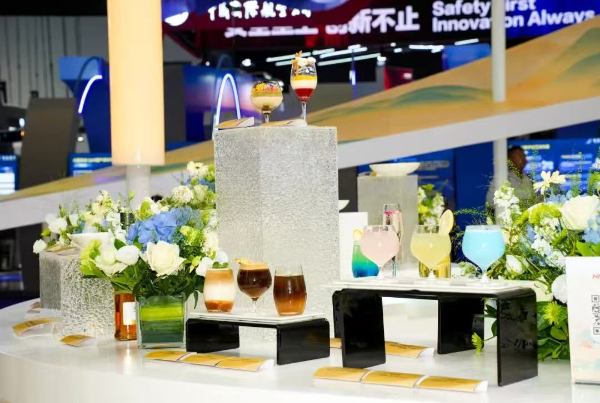 活動期間,新海航航空集團將空中餐廳搬到展廳,為觀眾帶來一場沉浸式美食體驗?,F場展示了旗艦航司海南航空與洲際酒店集團旗下彩豐樓、恰餐廳及酒吧聯合打造的“祥云珍饈”系列餐飲產品,如祥云桂花熏鯛魚、淮揚府聯名點心、碳烤鮑魚配海南菠蘿脆片等。觀眾還可以現場品嘗手磨咖啡以及海南航空機上飲品海島明珠、椰香茉荔、瓊中琥珀等,感受云端旅程的優雅與愜意,體驗航空服務的溫暖與貼心。