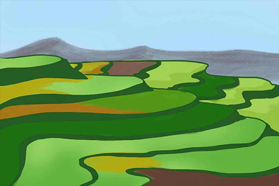???????梯田是在坡地上沿等高線修建成臺階式或坡式斷面的田地,因為塊狀田地順坡按等高線方向排列,外形看起來呈階梯狀而得名。水稻生長需要大面積的水塘,更適合在水資源豐富的平原地區。但我國南方地區的一些省份地形多為丘陵、山地,為解決糧食問題,居住在此地的農民借助堤壩修筑了能夠涵養水源、適宜水稻種植的梯田,使得丘陵地區也能夠大面積種植水稻。