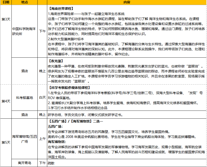 在科學家的帶領下,登上海洋科學考察船,深入了解大型海洋科考設備,體驗科學家海上科考環境,了解最前沿的海洋探測技術;與科學家面對面交流,走進海洋的微觀世界;走進全球唯一一個以海藻為主題的沉浸式體驗館,動手制作海藻手模,感受海藻的神奇魅力;走進亞洲館藏量最大的海洋生物標本館,近距離觀察各種珍稀海洋生物;夜間追尋“藍眼淚”蹤跡,全面了解夜光藻及其背后的生物、生態學知識。