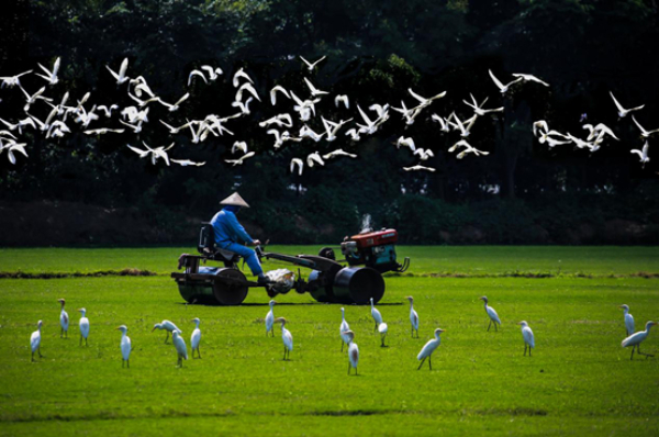秦山核電附近的金星村草坪基地,白鷺在耕過的地上覓食 宓忠霞攝