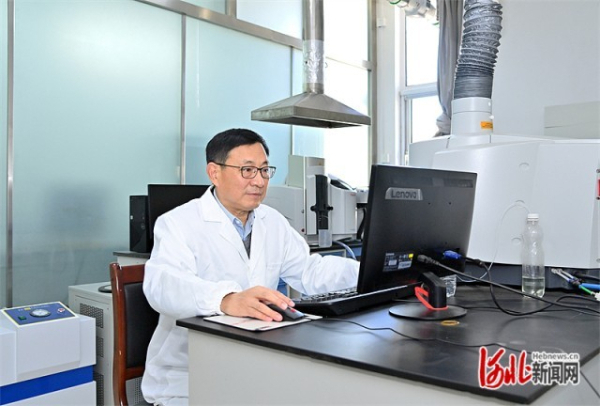 2022年11月30日,張福成正在實驗室進行鋼鐵材料樣品成分分析測試。華北理工大學供圖