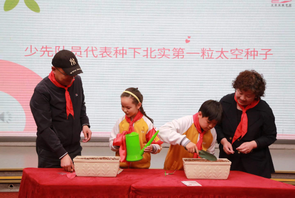 最令人難忘的時刻是該校的少先隊員代表種下北實第一粒太空種子。這一刻,不僅是孩子們在播種夢想,更是對未來的期許。這粒種子,將在校園里生根發芽,見證師生們共同成長和進步。北京實驗學校(海淀)小學部以太空種子為媒,將勞動教育融入學生的日常學習中,不僅是對傳統勞動教育的一次創新,更是對人才培養的積極探索。