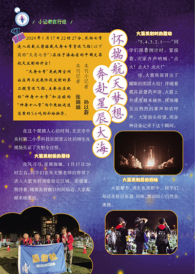 “走進海南文昌發射場,現場觀看天舟七號發射……”近期,北京市中關村第二小學學生在《少兒科技》雜志上分享了參加航天文昌科普基地與該校共同組織的航天科普活動的心得體會。