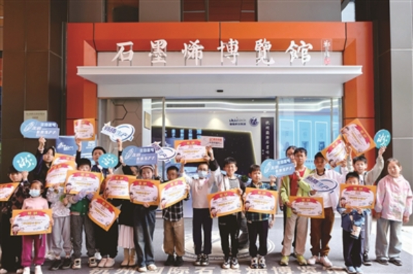 講解員告訴大家,石墨烯有非常豐富的應用場景,比如石墨烯氣凝膠吸附海上原油的能力,石墨烯基碳纖維、散熱膜可用于航空航天領域,石墨烯復合纖維可極大優化人們日常生活……“我們用石墨烯電池給手機充滿電,只需要幾秒鐘就可以把電充滿?!焙⒆觽冊陉囮圀@嘆中,對石墨烯這個新材料和科技革新的前景充滿了好奇和憧憬。
