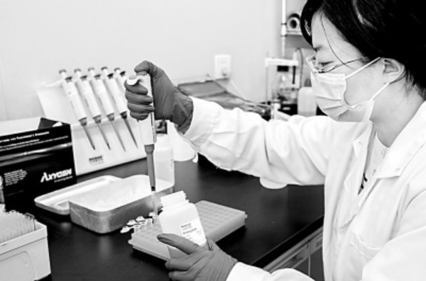在內蒙古自治區林業科學研究院承擔的“沙地生物資源保護與培育國家林業和草原局重點實驗室”,科研人員在進行分子生物學操作。丁根厚攝/光明圖片