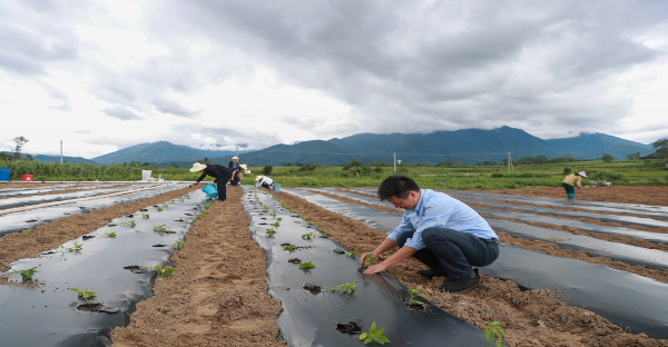 海南核電鄉村振興駐村干部李宜君在種植辣椒苗 劉玄攝