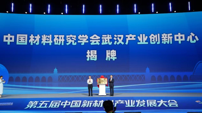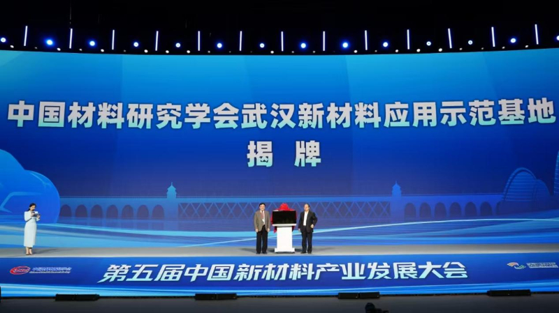 中國材料研究學會是中國科協“科創中國”服務團優秀單位,借助本次大會契機,中國材料研究學會將與武漢經開區建立深度合作,推動新材料技術創新和應用示范,打造產學研協同創新平臺。開幕式期間進行揭牌儀式,中國工程院院士謝建新和中國材料研究學會監事長李光憲為“中國材料研究學會武漢產業創新中心”揭牌。魏炳波和劉子清為“中國材料研究學會武漢新材料應用示范基地”揭牌。李元元院士、武漢市政協主席楊智為“武漢經開區新材料產業園”揭牌。