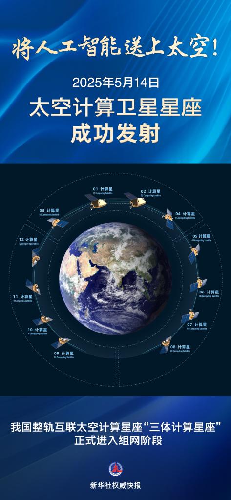 記者5月14日從浙江省新型研發機構之江實驗室了解到,隨著太空計算衛星星座14日在酒泉衛星發射中心成功發射,我國整軌互聯太空計算星座“三體計算星座”正式進入組網階段。