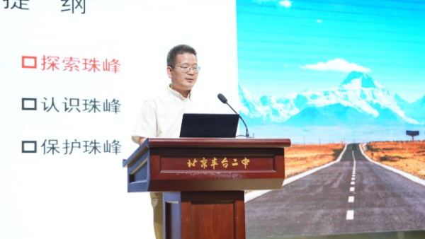 作為世界海拔最高峰,珠峰地區氣候復雜,其獨特的地質、生態結構吸引無數科學家前往珠峰探尋科學未知。19日,中國科學院地理科學與資源研究所副研究員劉林山帶領300名來自北京市豐臺區第二中學的同學們,共同閱讀《走近地球之巔》一書,在書中尋找中國科學家們解開世界之巔秘密的科學初心。