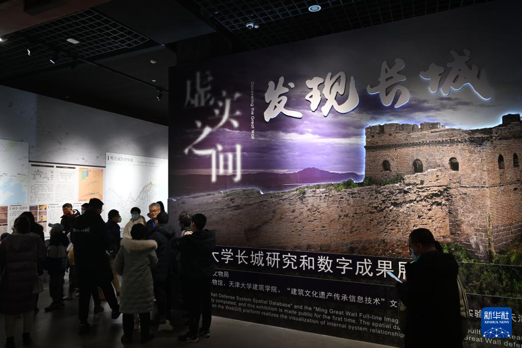 2月12日,觀眾在觀看虛實之間·發現長城——天津大學長城研究和數字成果展。