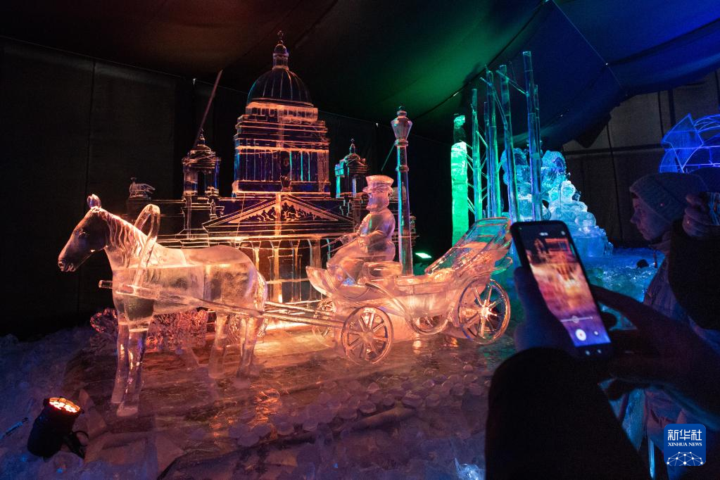 這是2月19日在俄羅斯圣彼得堡冰雕節上拍攝的作品。新華社發(莫京娜 攝)