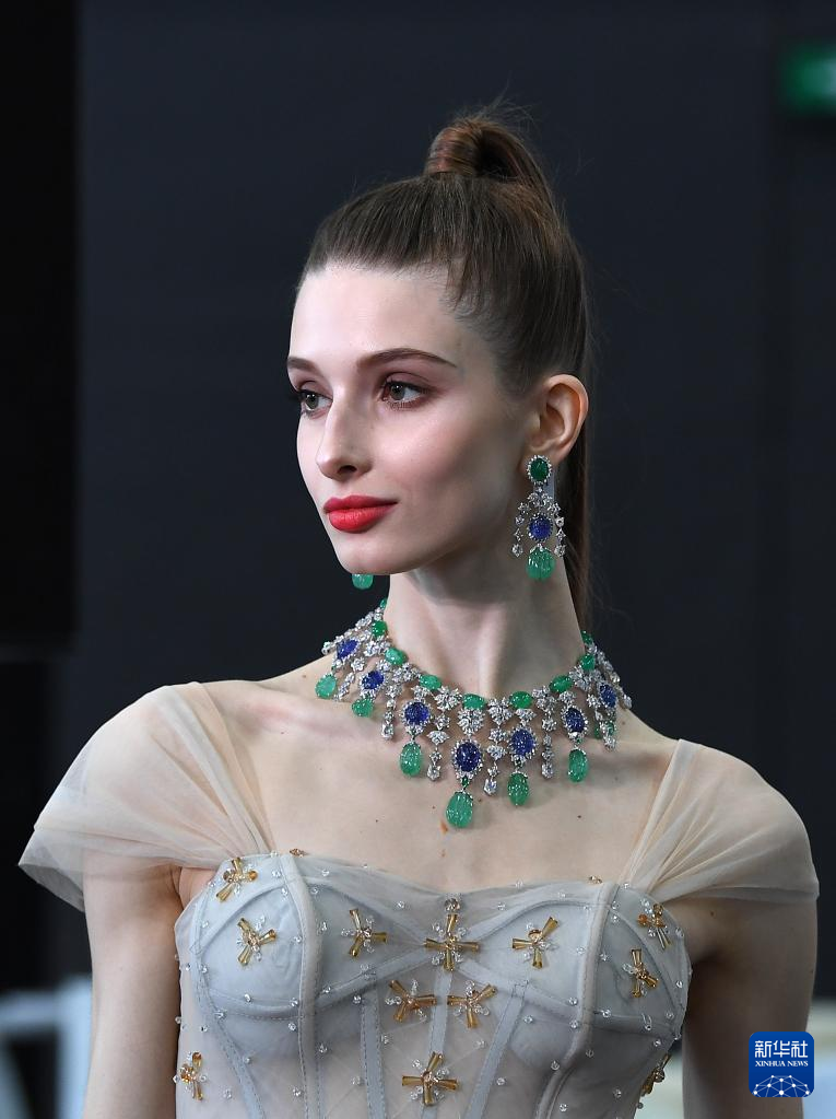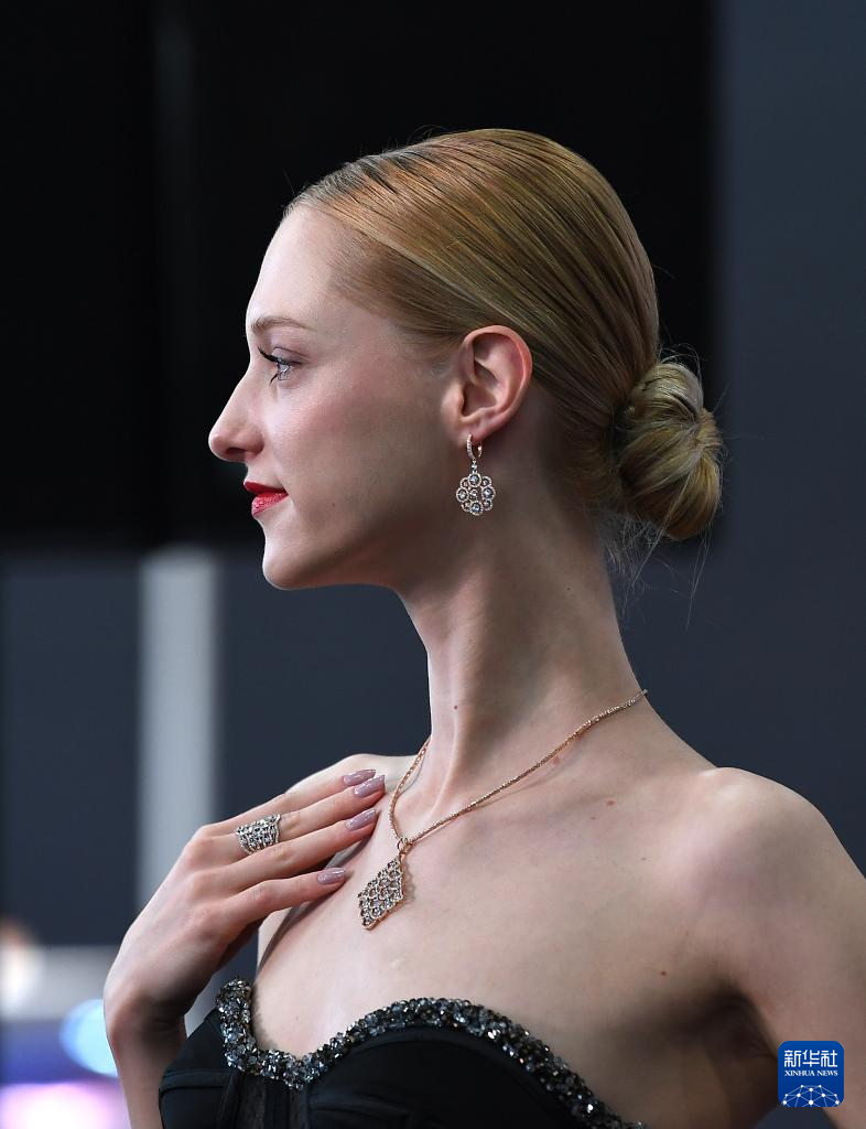 3月1日,模特在珠寶展上展示飾品。