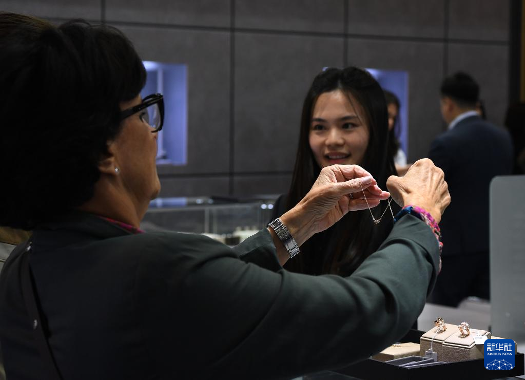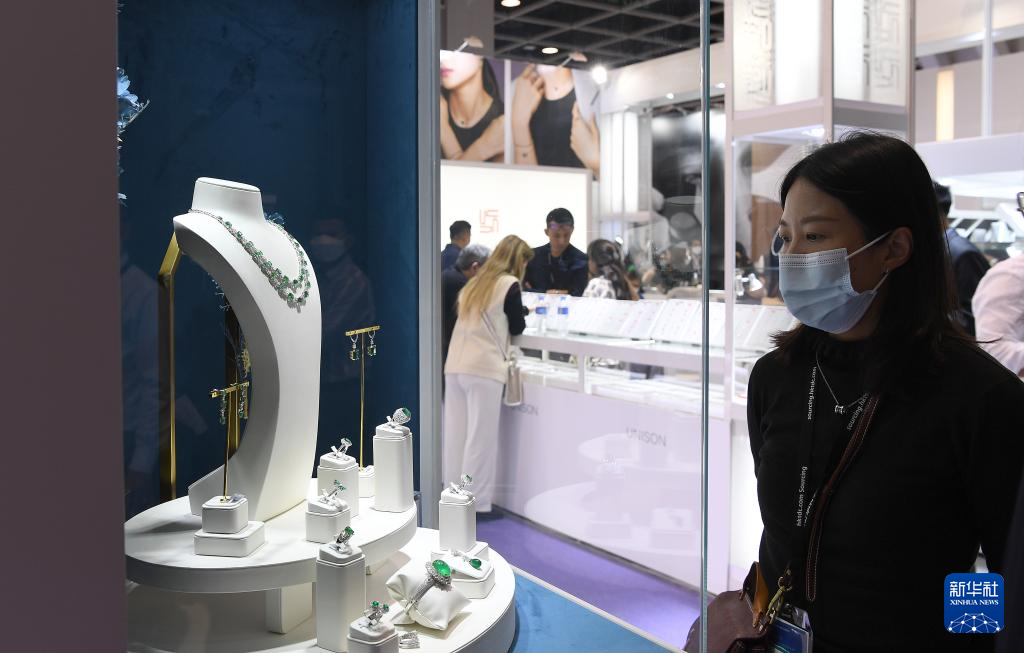 3月1日,參觀者在珠寶展上挑選珠寶。