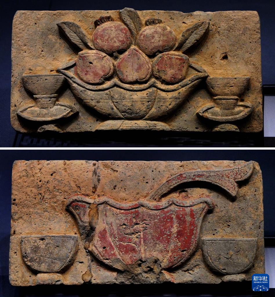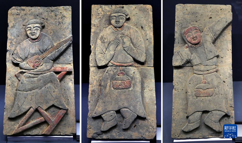 這是在鄭州大象陶瓷博物館舉行的“宋人生活與二十四孝磚雕展”上展出的社火彩繪磚雕(3月1日攝,拼版照片)。