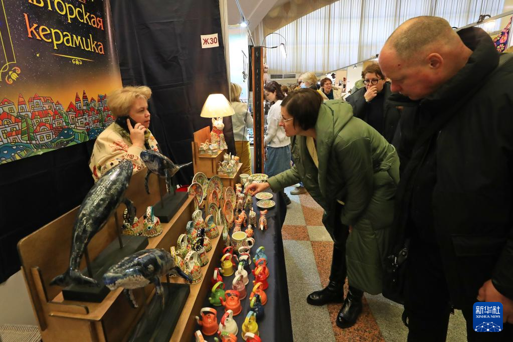 3月4日,人們在白俄羅斯明斯克“神奇磨坊”傳統手工藝展上參觀。