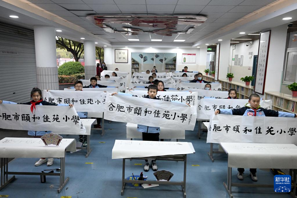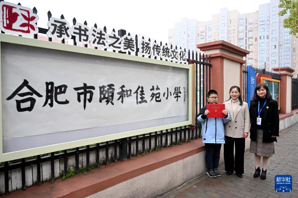 當日,安徽省合肥市頤和佳苑小學教育集團金牛路校區開展“我的校名我來寫”書法比賽活動,邀請學生們題寫校名,并評選出優秀作品張貼在學校門口。據學校校長介紹,今后學校會定期舉辦題寫校名書法比賽活動,入選作品將由學校永久收藏并向學生頒發收藏證書,以激發學生們學習書法的熱情。