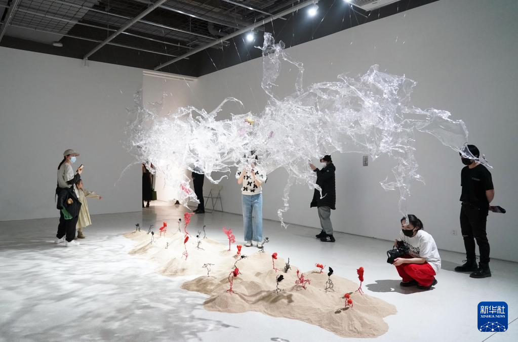 當日,“WAVELENGTH:瞬息涌現”當代藝術展在位于北京市海淀區的北京時代美術館開展。本次展覽共展出16位國際當代藝術家的14組超現實當代藝術裝置,表現“瞬息”之間的藝術風景。展覽將持續至7月1日。