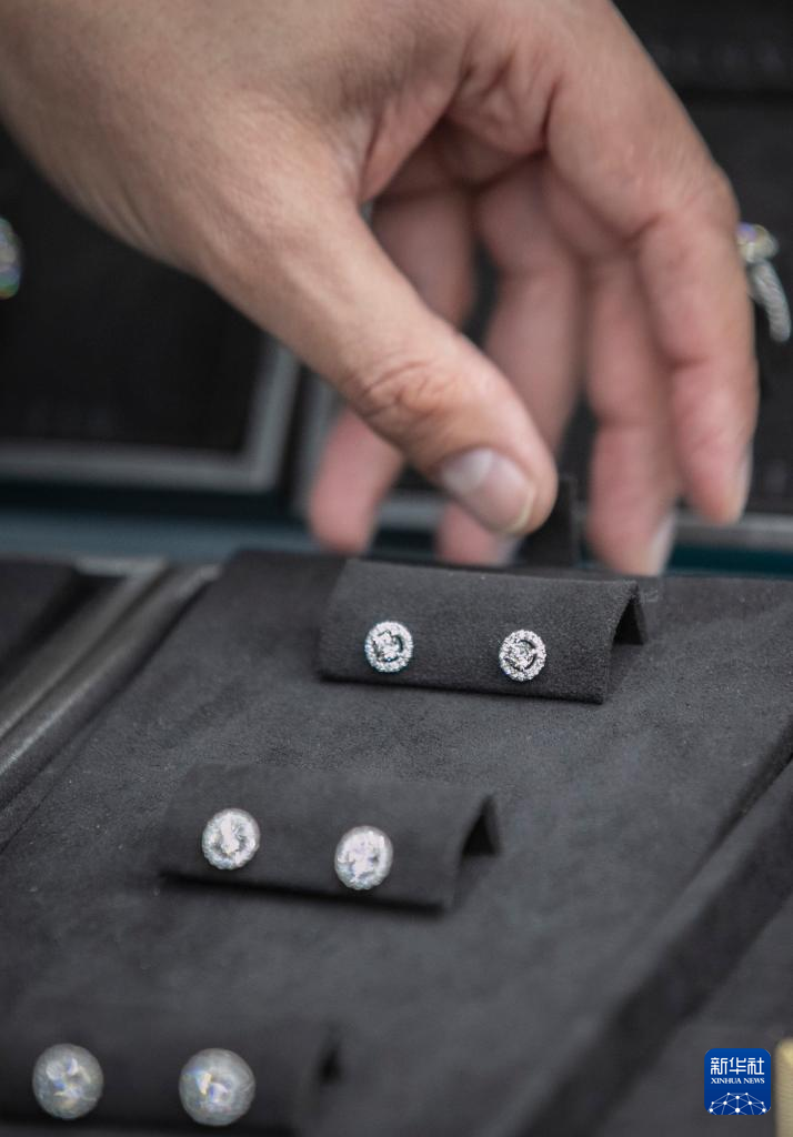 3月29日,參展商在以色列拉馬特甘的鉆石展現場展示鉆石。