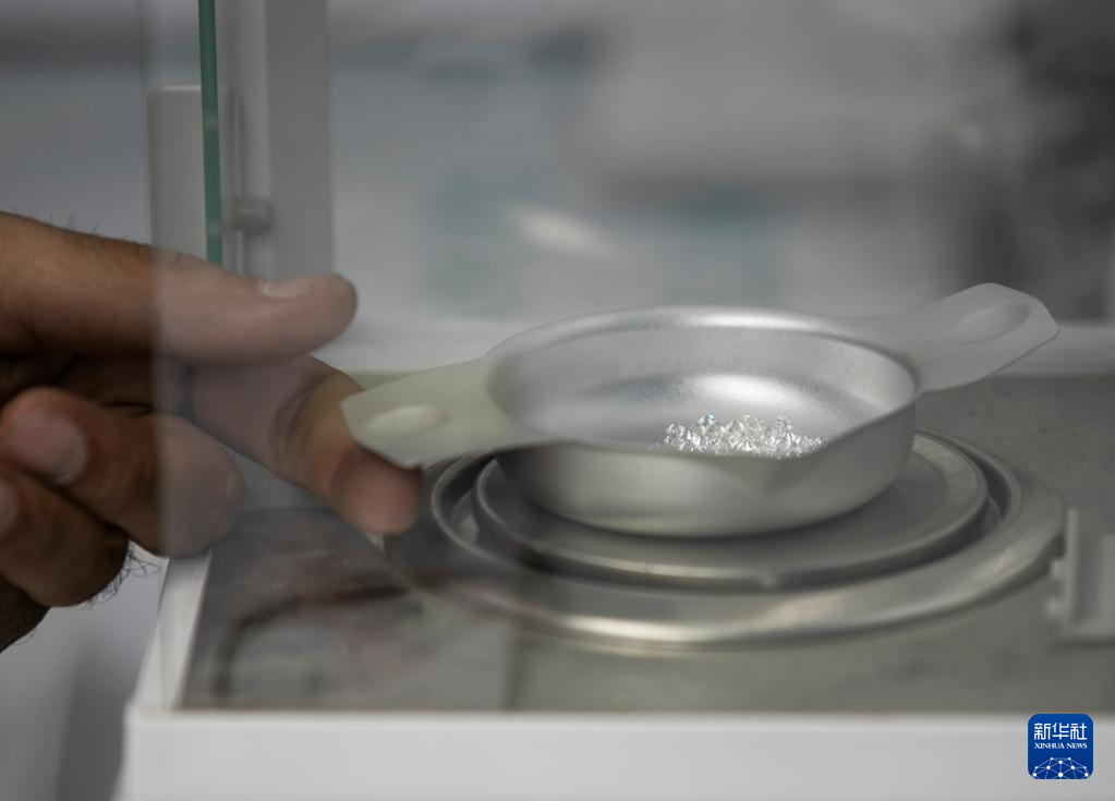 3月29日,參展商在以色列拉馬特甘的鉆石展上為鉆石稱重。