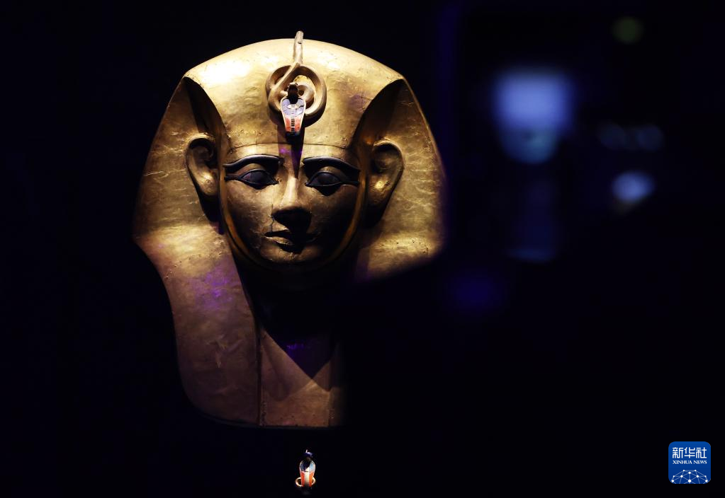 這是4月6日在法國巴黎拍攝的法老木質鍍金面罩。