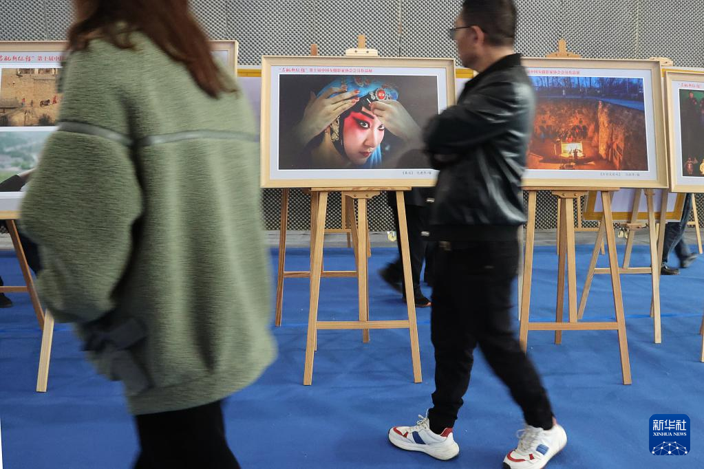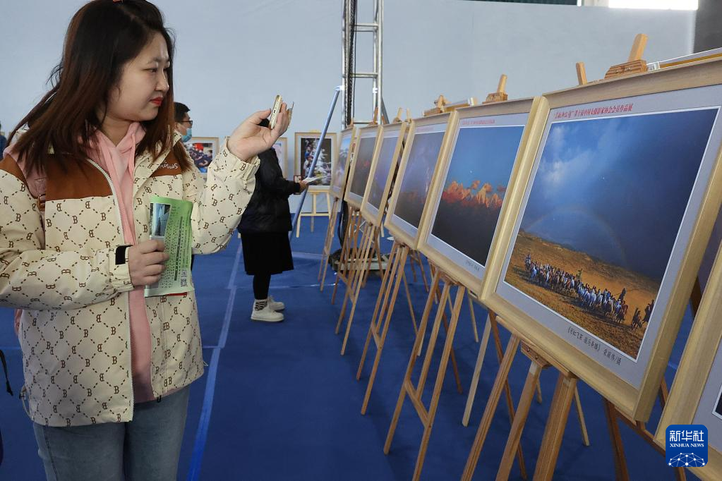 4月23日,一名觀眾在展覽現場上拍攝展出的攝影作品。