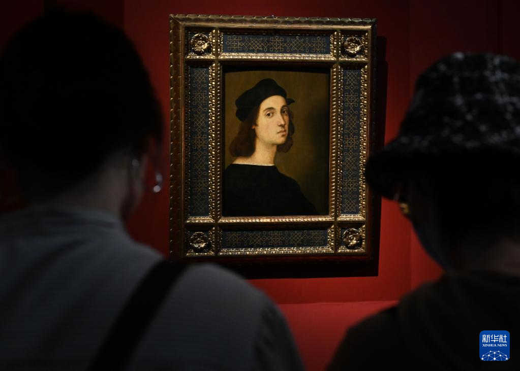這是在展覽現場拍攝的拉斐爾自畫像(4月26日攝)。