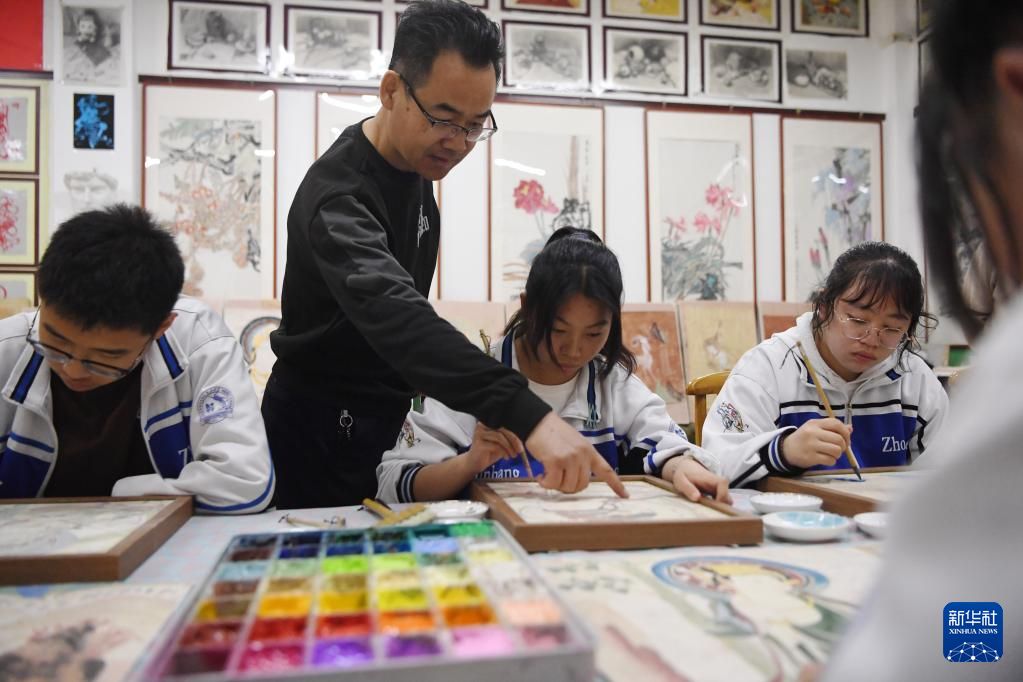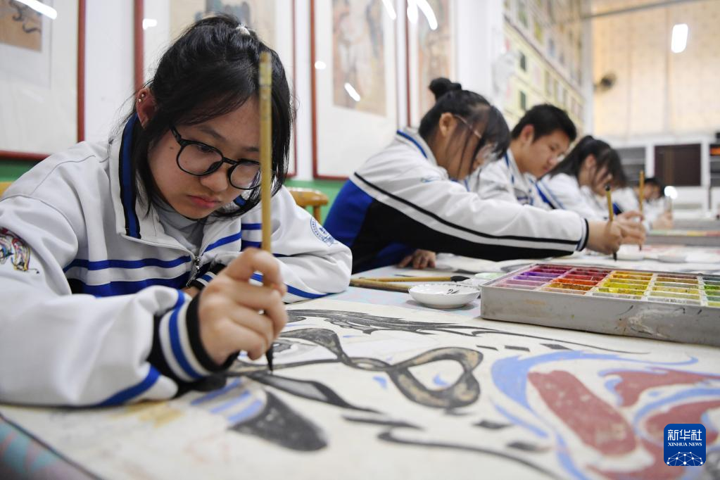 近年來,甘肅省敦煌市敦煌中學將敦煌壁畫藝術引入校園,整合專業師資力量,通過美術課堂、社團活動和主題實踐的方式,加強學生對敦煌壁畫藝術的了解,讓有興趣的學生在校園里開展壁畫臨摹和藝術創作,豐富校園文化生活,讓學生感受敦煌文化的魅力。